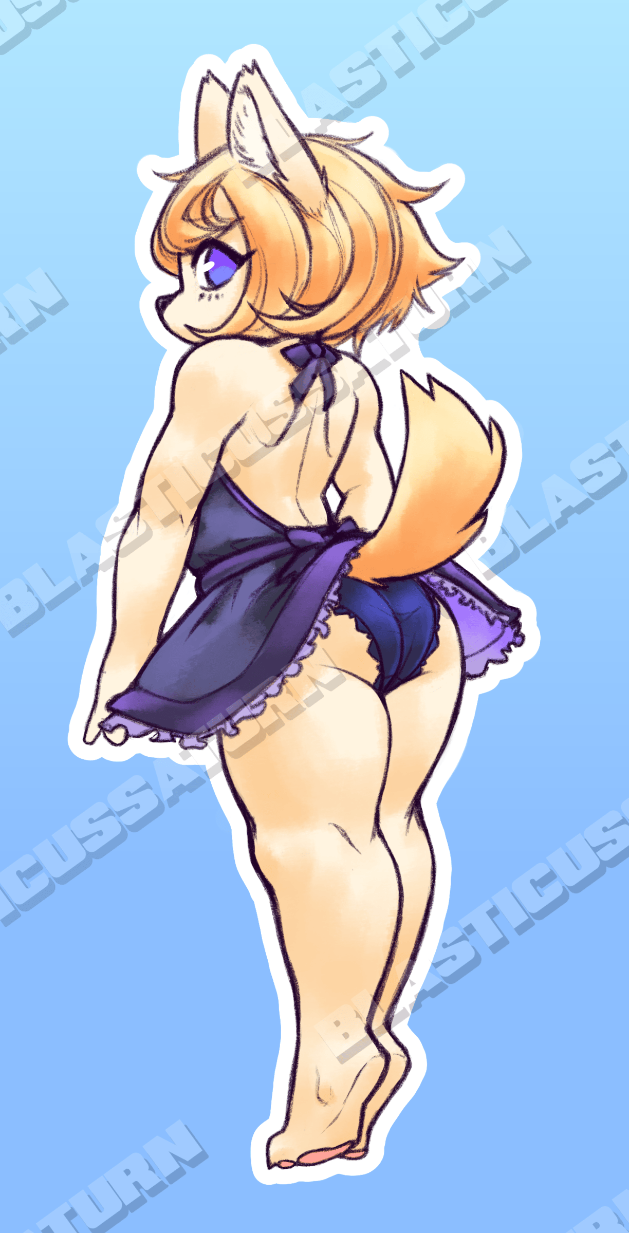 vinyl sticker - My blonde dog character, Bella. Featuring the back half of her.