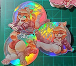 iridescent vinyl stickers - Aspiring good girl and man's best friend, Biscuit, featured in a trio of shiny iridescent stickers.