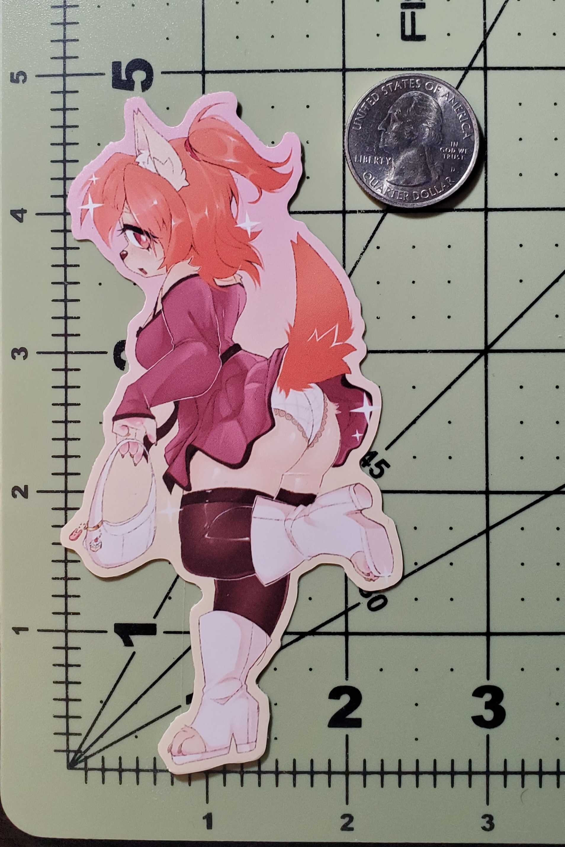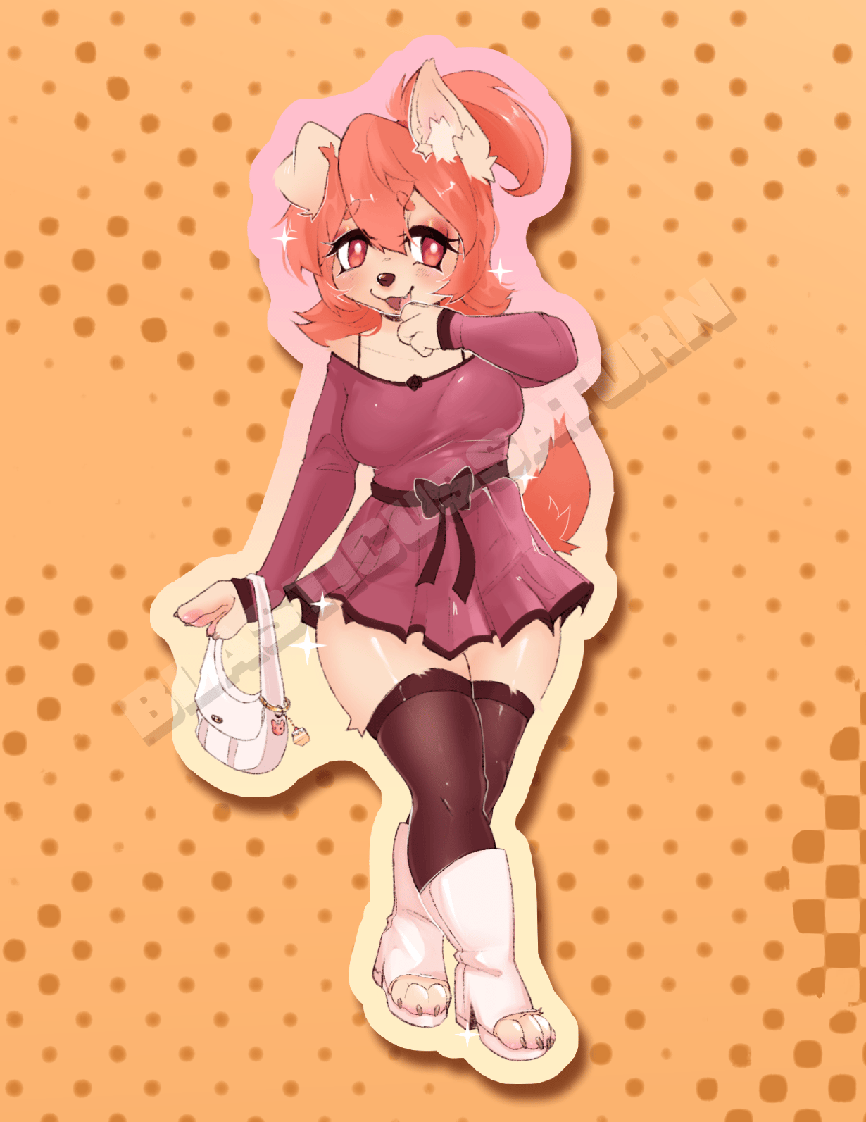 vinyl sticker - My silly dog OC, Biscuit. Drawn by my friend Cinna (@Cinnaf0x on twitter)