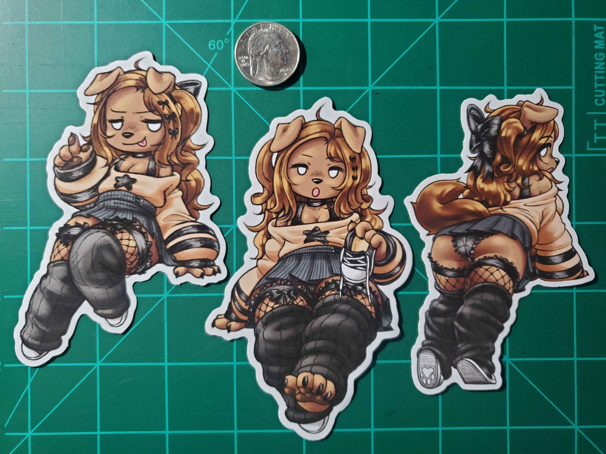 vinyl stickers - 3 different designs featuring my Greedy dog girl.