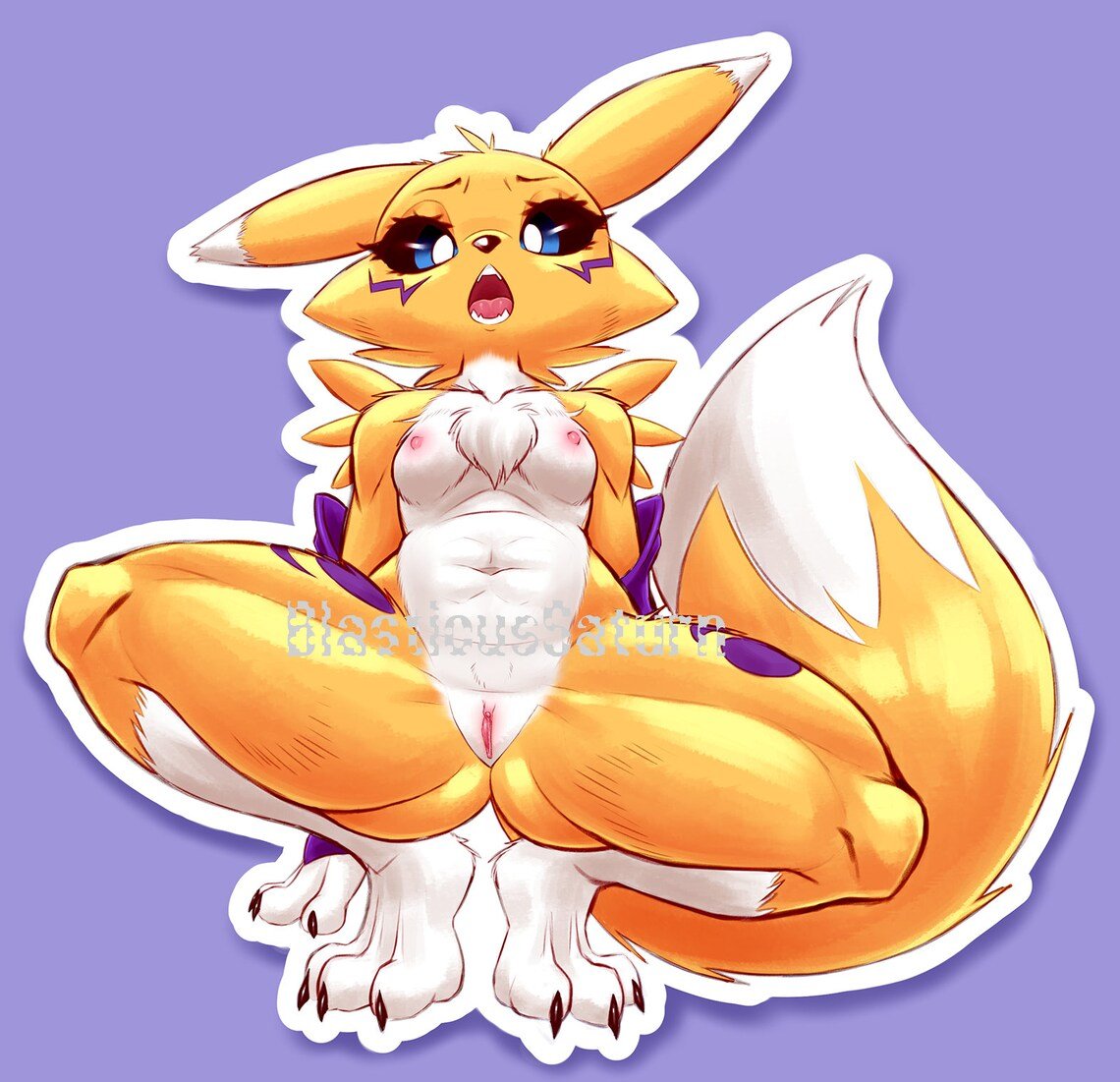 Matte vinyl sticker - Renamon showing off her goods.