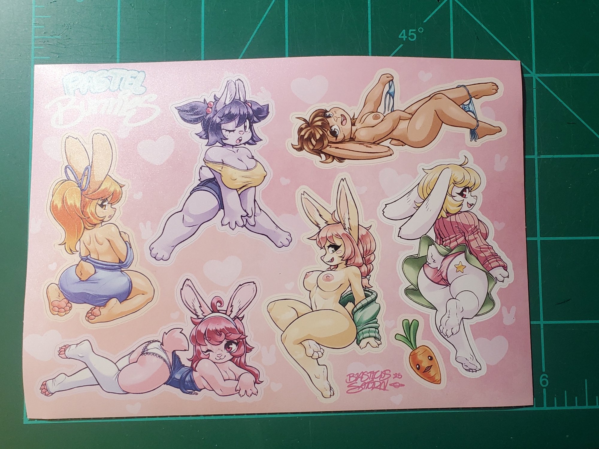 Buncha colorful bunnies showing off the goods in their own ways.