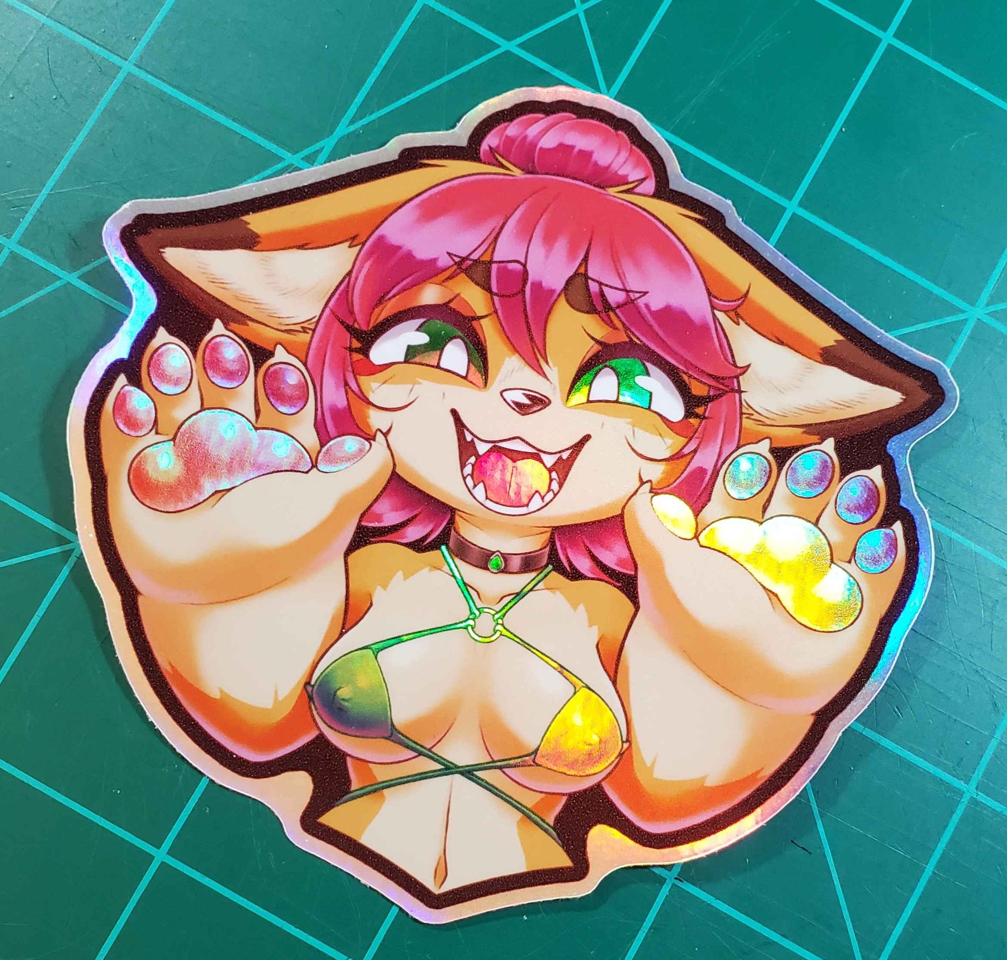 This sticker has an iridescent, rainbow effect that catches the light and makes certain bits almost glow with color.