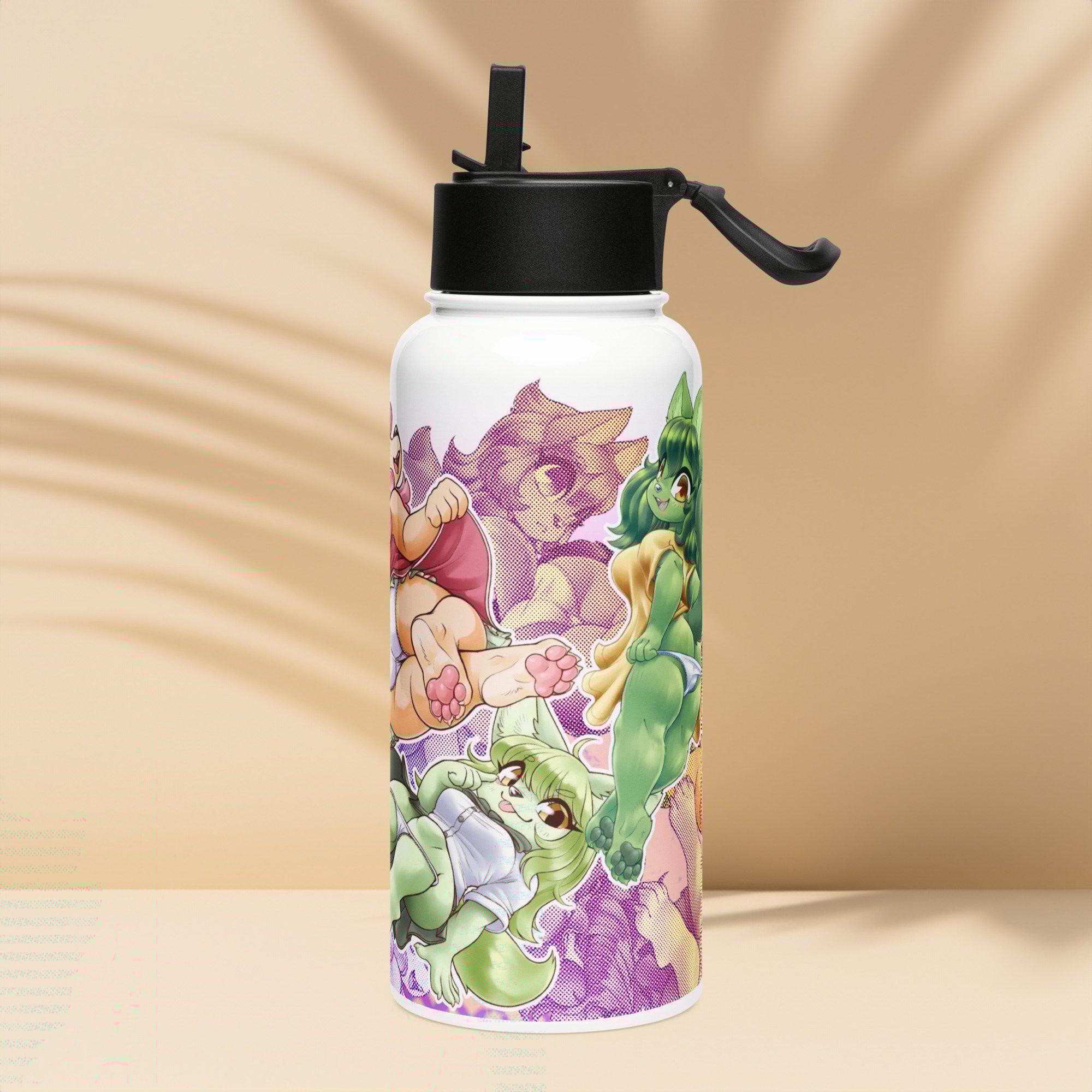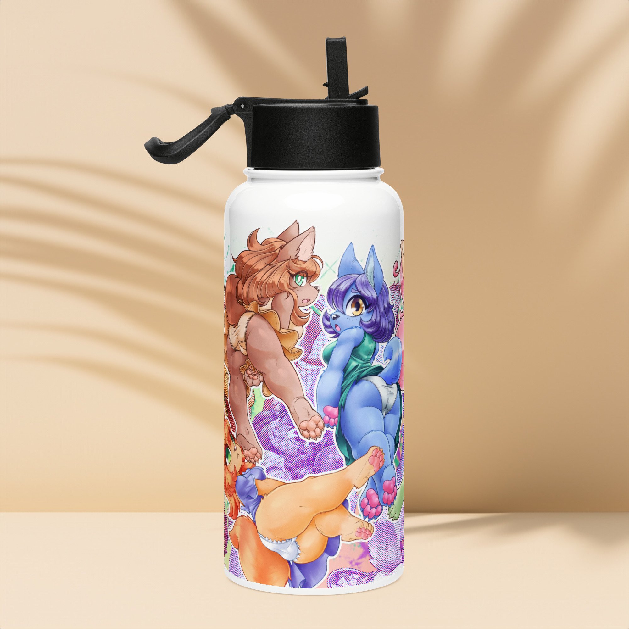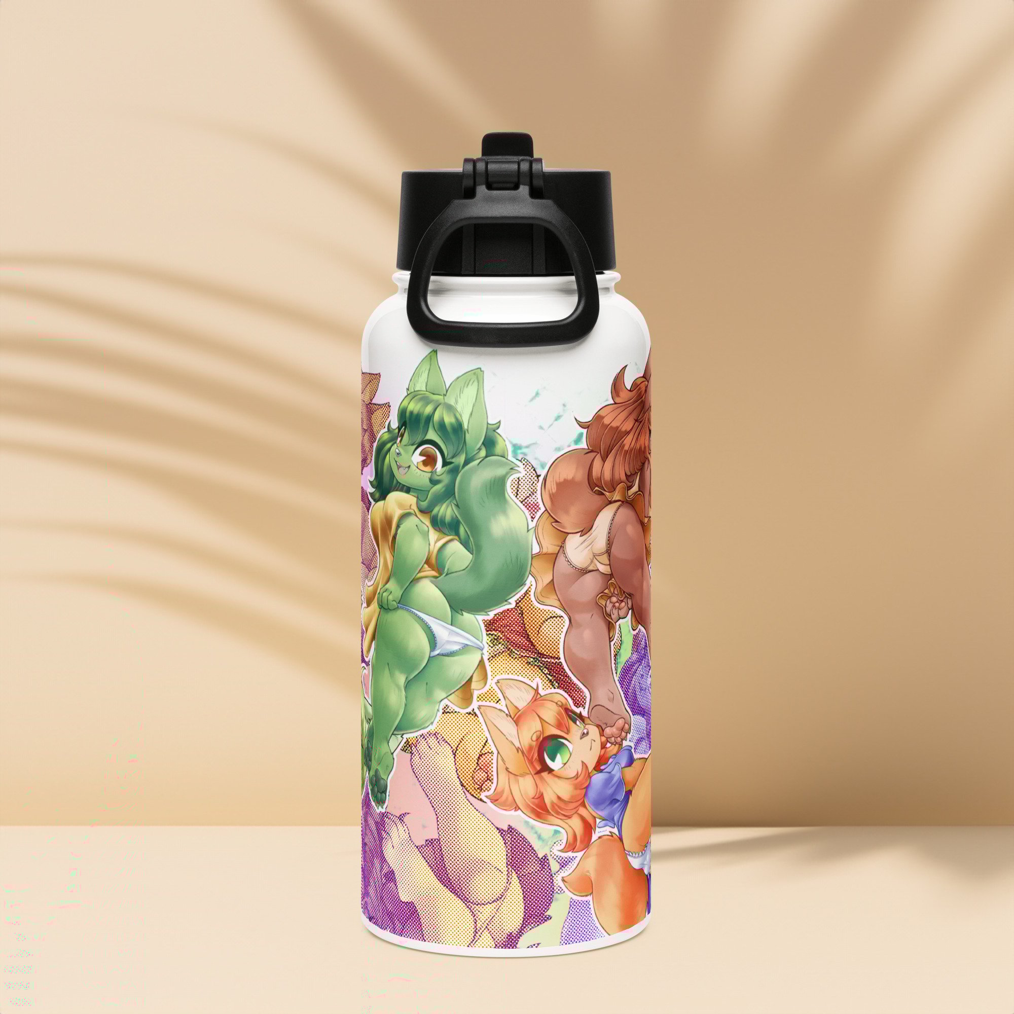 32 oz (950 ml) water bottle. with a wide-mouth foldable straw, and a rotating handle for easy carrying.
